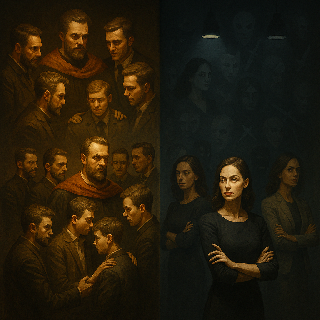 Phụ nữ thì xây được gì? Những mạng lưới cảm xúc. Những liên minh tạm thời. Những nhóm bạn “tri kỷ” mà hôm nay ôm hôn, ngày mai cắt đứt. Bởi vì khi mục tiêu cá nhân thay đổi – khi có người đàn ông mới, khi địa vị thay đổi – thì liên minh cũ không còn giá trị. Và thế là nó sụp đổ, không cần tuyên bố, không cần lý do. Chỉ một im lặng, một sự lạnh nhạt, một lời đồn thổi nhỏ – là đủ. Không ai bị đổ máu, nhưng tổn thương thì sâu như dao cứa.